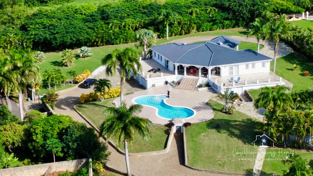 Discover a breathtaking tropical retreat in the heart of the North Coast of the Dominican Republic. This impressive 4-bedroom, 4-bathroom luxury villa offers 404m² of solid construction on an expansive 9,966m² private lot, located inside a secure gated community between Sosúa and Cabarete.
